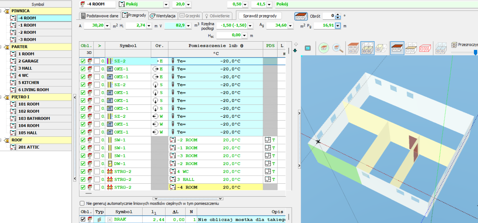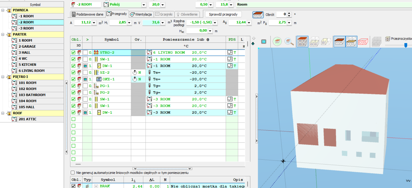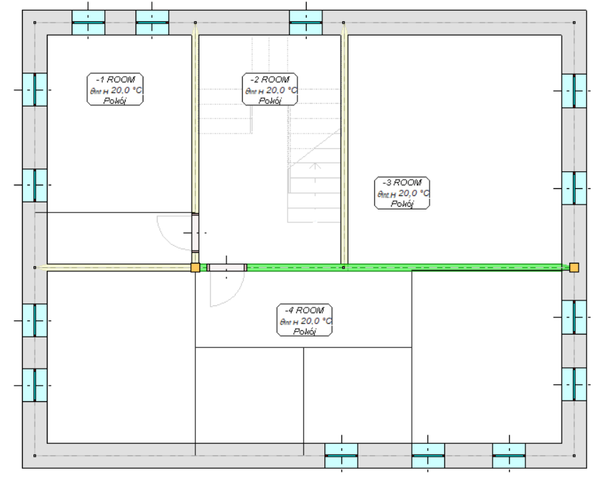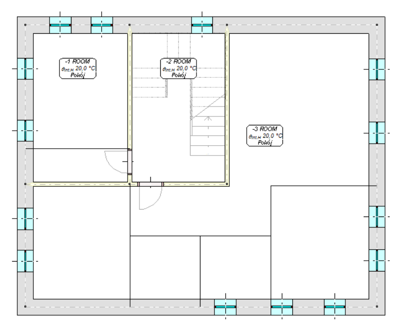 Podkład budowlany wraz ze strefami pomieszczeń i komponentami budowlanymi: