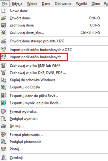 Aby import wszystkich elementów przebiegał prawidłowo, pliki gbXML oraz pliki podkładów budowlanych dxf/dwg muszą być umieszczone w tym samym folderze.